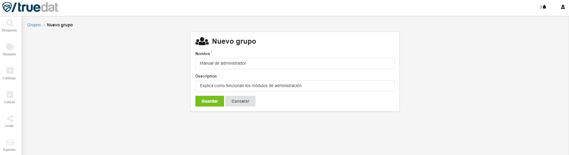 We can create a new group or edit an existing one. In both cases the data to be entered / modified will be the same: