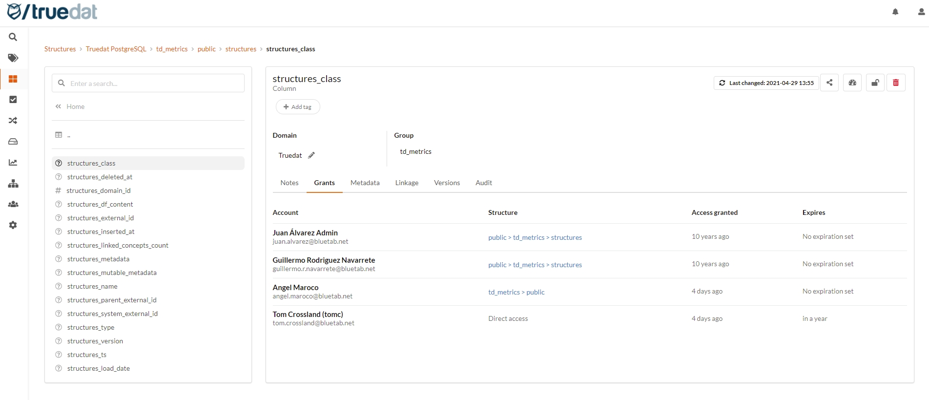 • TD-3948 As a Data Catalog manager I want to see the grants given for a specific structure