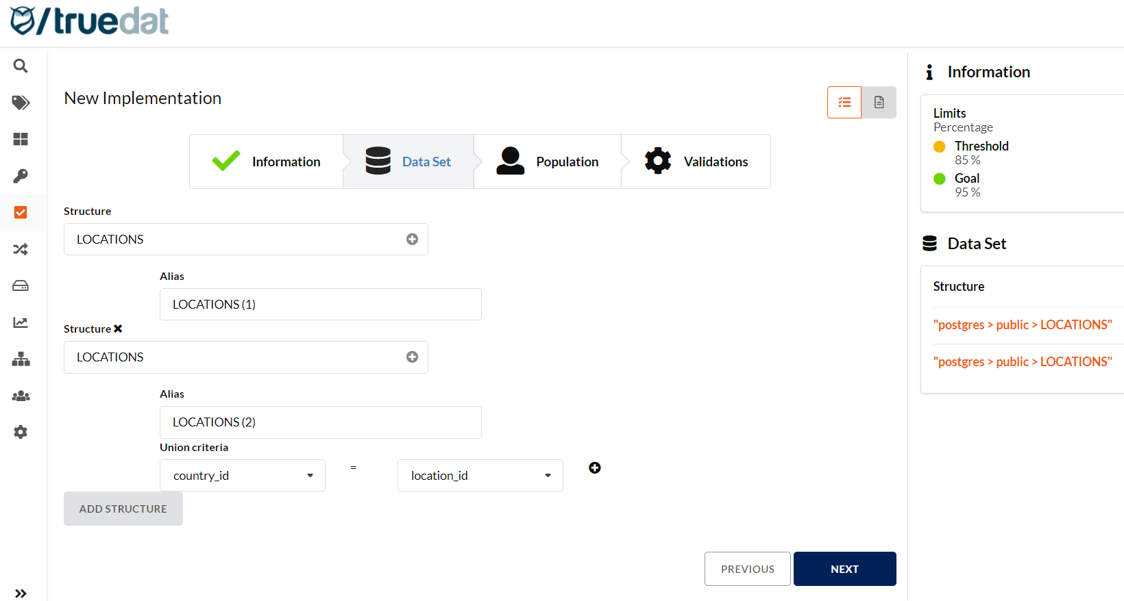 When creating a new implementation, you can now join a table to itself. The same table is specified twice but with two different aliases. These table aliases can be edited.
