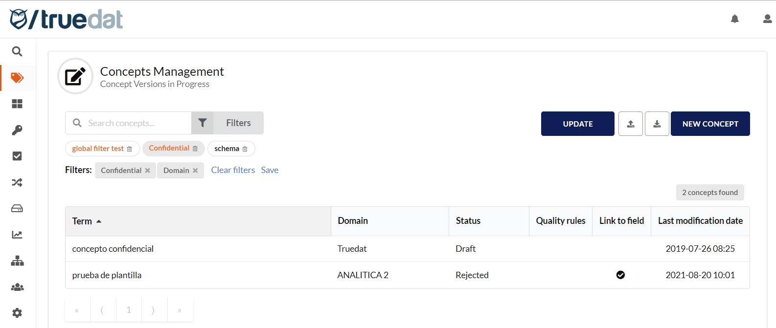 Global search filters are now also available in the Business Glossary module.