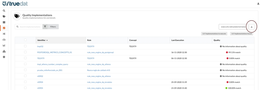 [TD-2092] - As a Data Quality user I want to export rule and implementation data including results to csv file to allow me further analysis