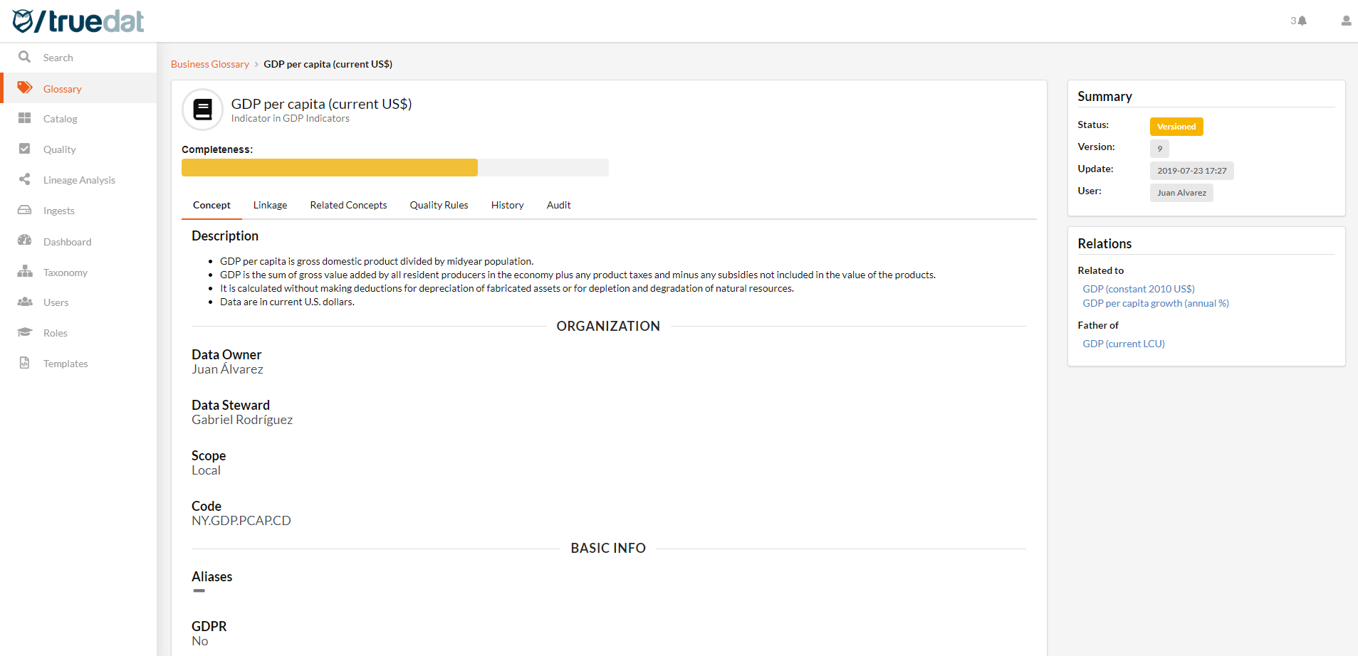 Business glossary's goal is to provide unique definitions of your business data available to the whole organization in order to avoid misunderstandings on the definition of your data.