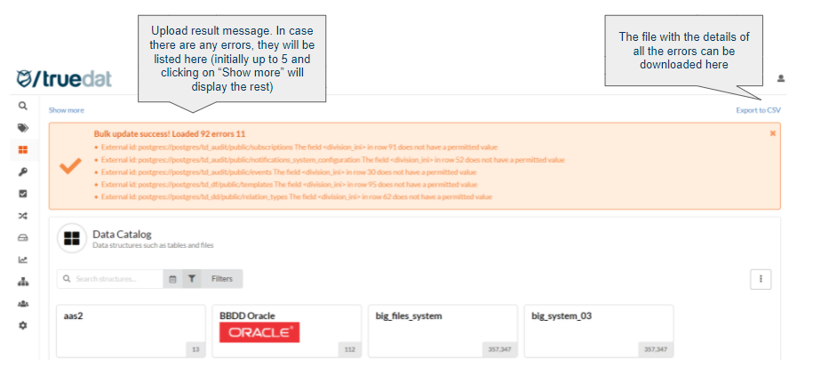 All the records that cannot be loaded will be written in a csv file which can be downloaded.