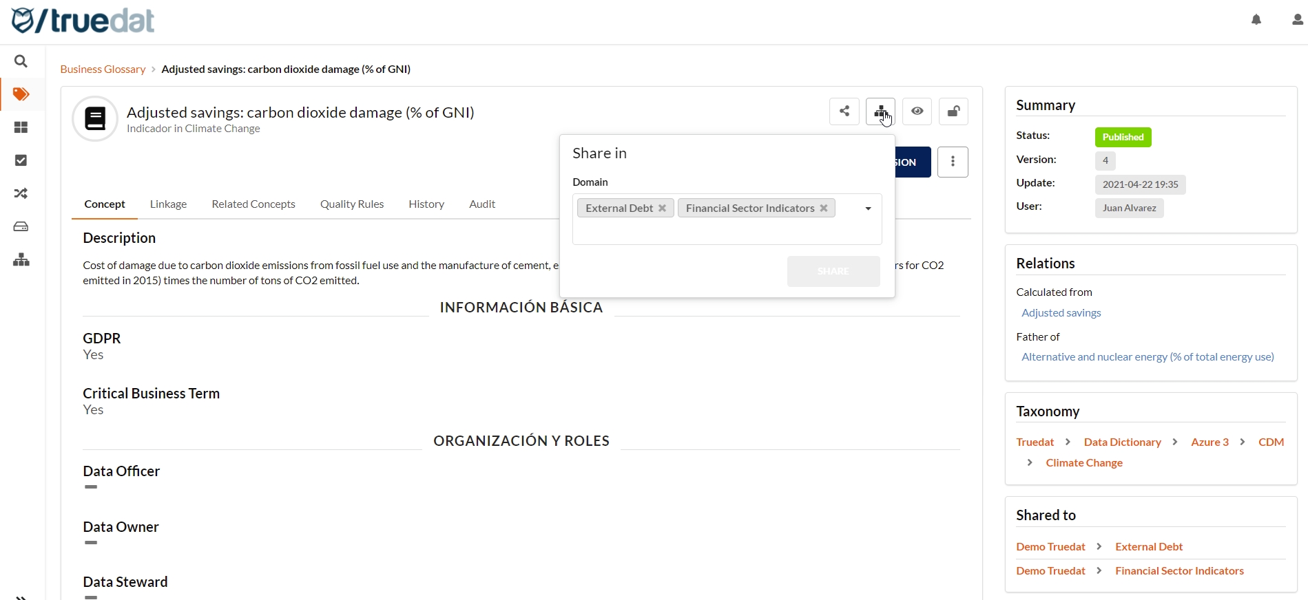 • TD-3447 As a business glossary user I want to share concepts from my domain with other domains