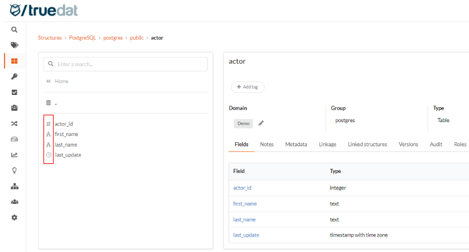 The icons displayed in the Data Catalog for structures of type field can be customised with a different icon depending on their data type, e.g. string, numeric, boolean, etc.
