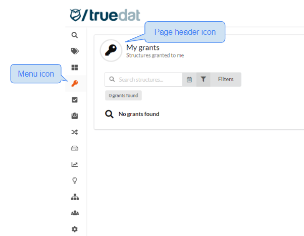 The icons used in the menu for each of the Truedat's modules as well as the ones displayed in the headers of the main pages can now be custumised. This can be done in the Administration > Languages section by defining a new message to be translated.