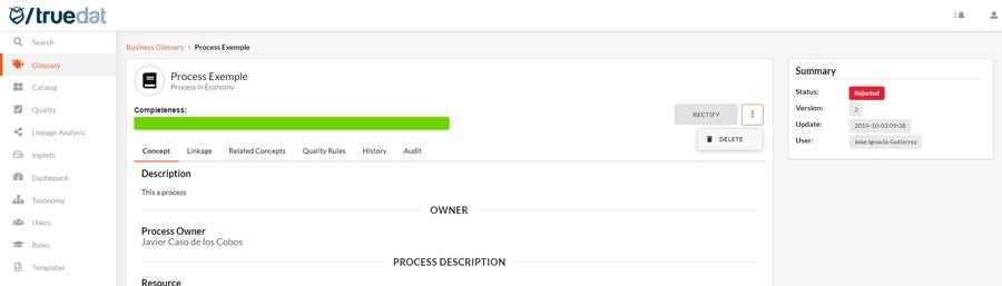 Concepts in Rejected status: there are two options available "Rectify" and "Delete"