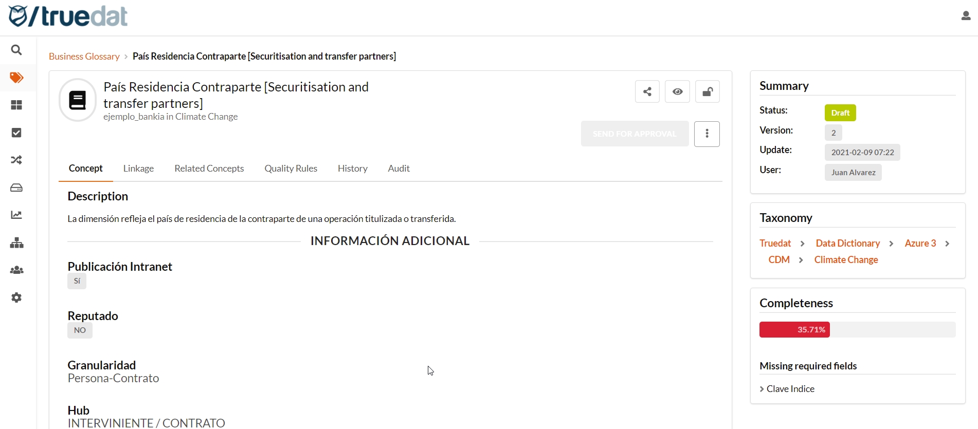 When users save business concepts drafts without completing all mandatory fields a summary will be displayed specifying the missing fields. This will help the user understand if a concept is not allow to send for approval.