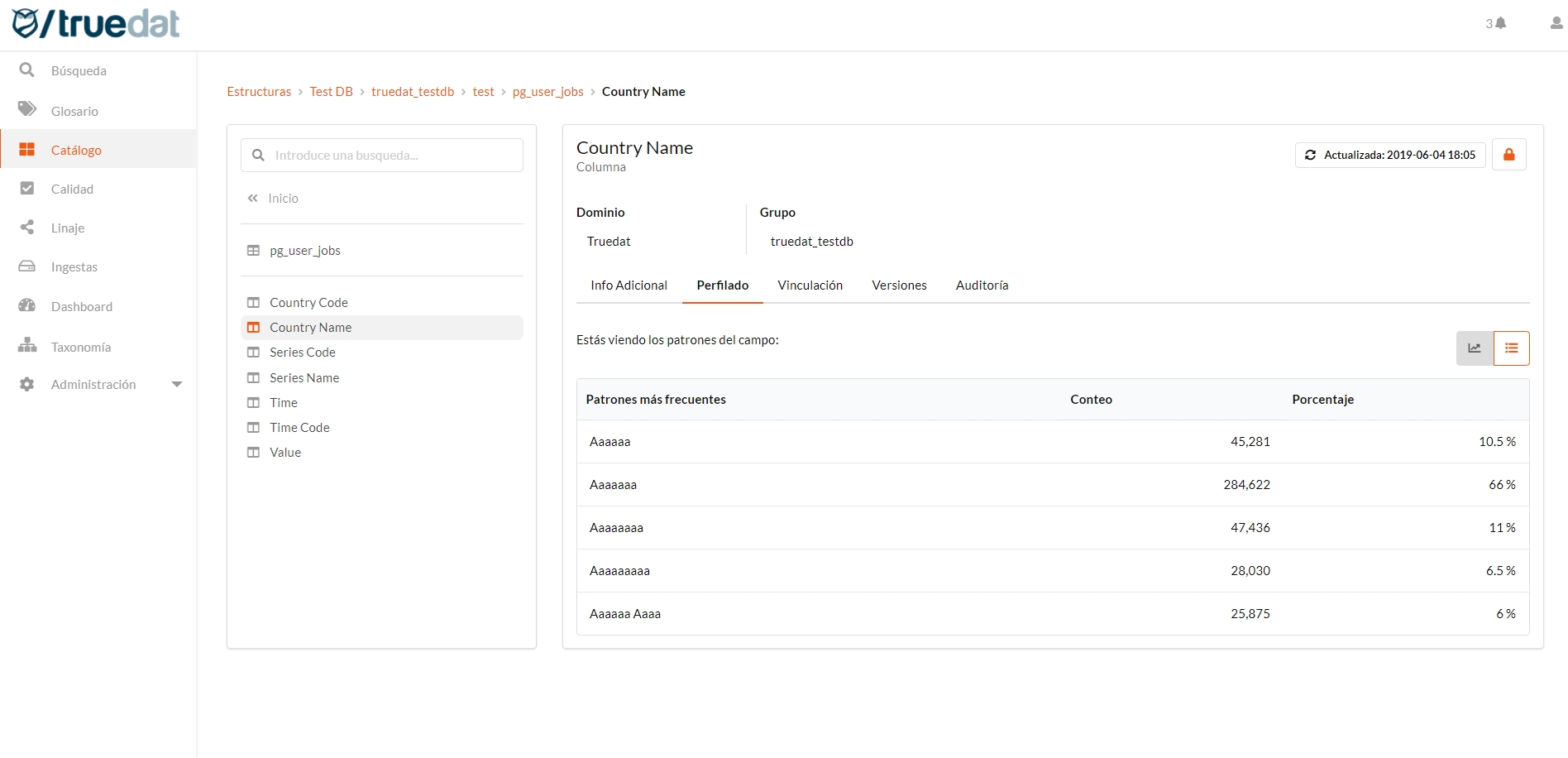 If we have loaded pattern information using the profiling connector, we can also consult this distribution helping us to better understand our data.