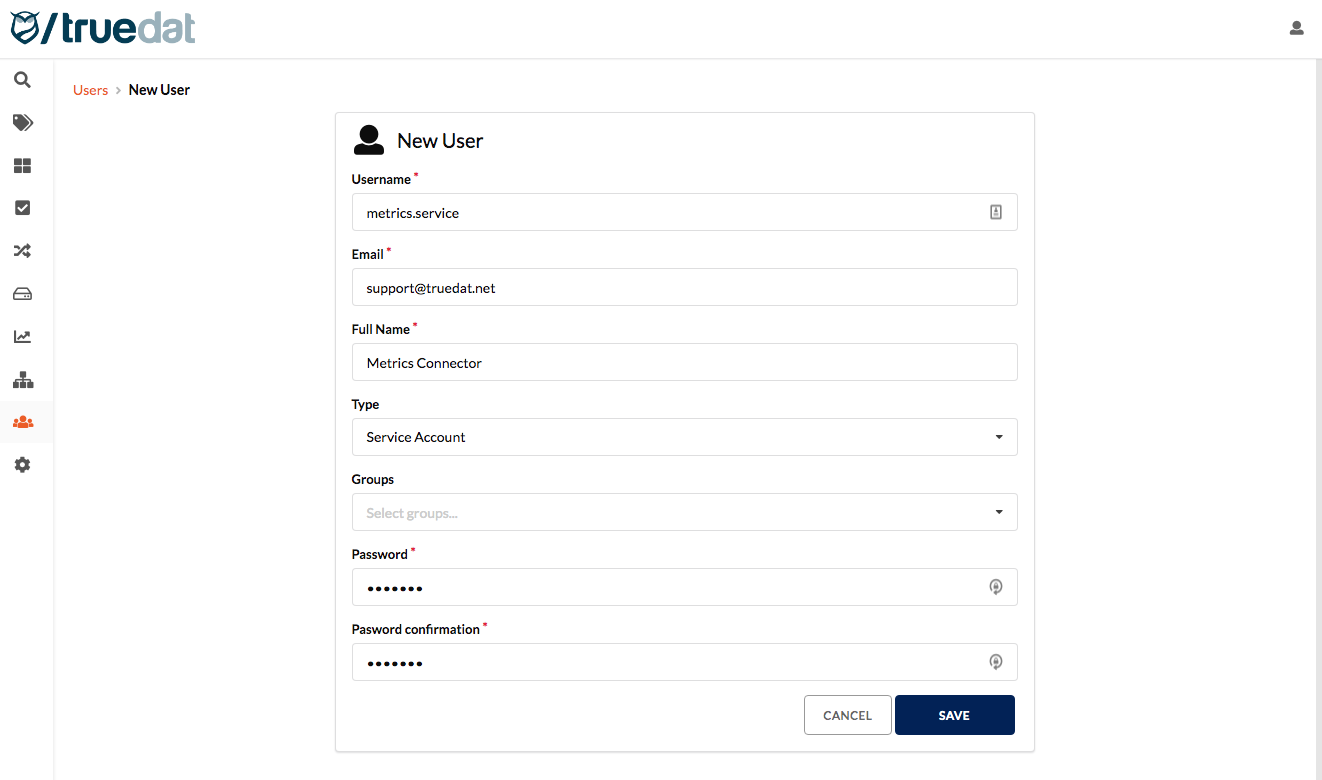 In order to improve security there is a new type of account "Service Account" which will be used by connectors or third party applications which need to access the API but not the front-end. This accounts will be able to query all information in the application and post information on the metadata load end-points but will not be able to do any administrative action in the application.