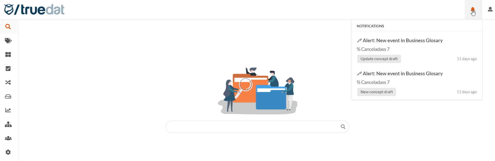 User will receive alerts according to their subscription configurations inside the application by clicking on the bell icon on the top right part of the screen.