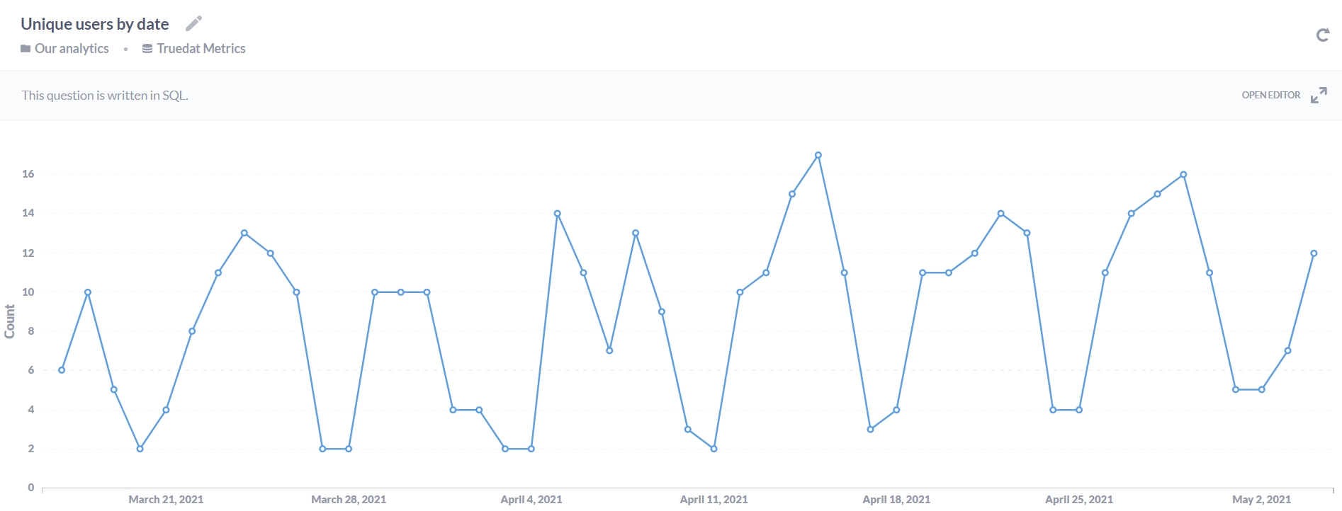 Information according to user access is included in the metrics data model. This will allow to include information about unique users access in our integrated dashboards: