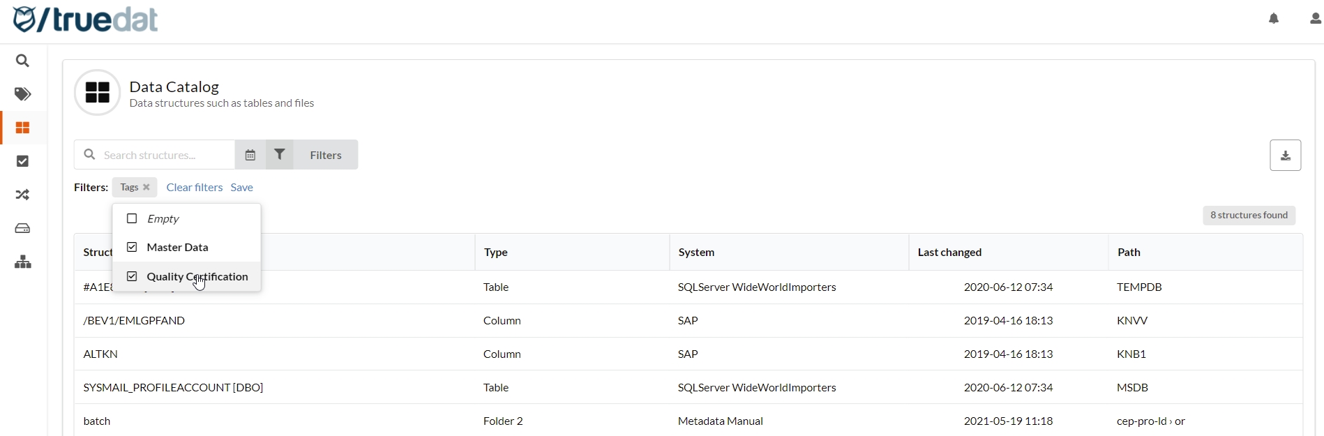 Filter data structures by tag