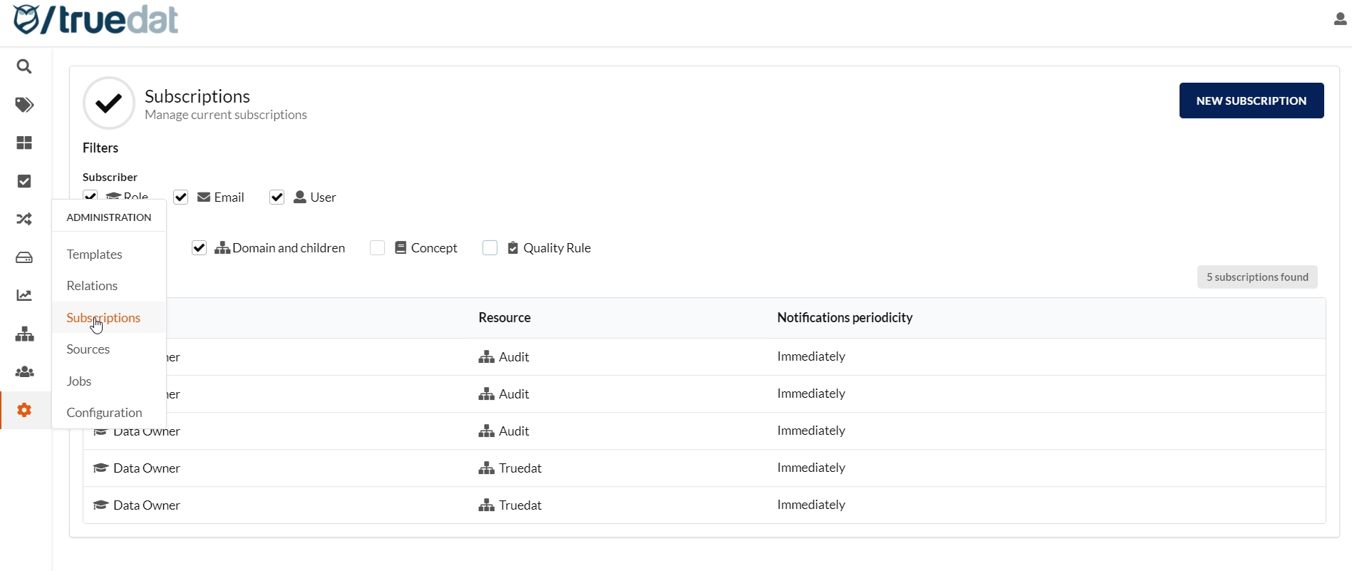 TD-2437 - As an admin user I want to manage the subscriptions in my platform