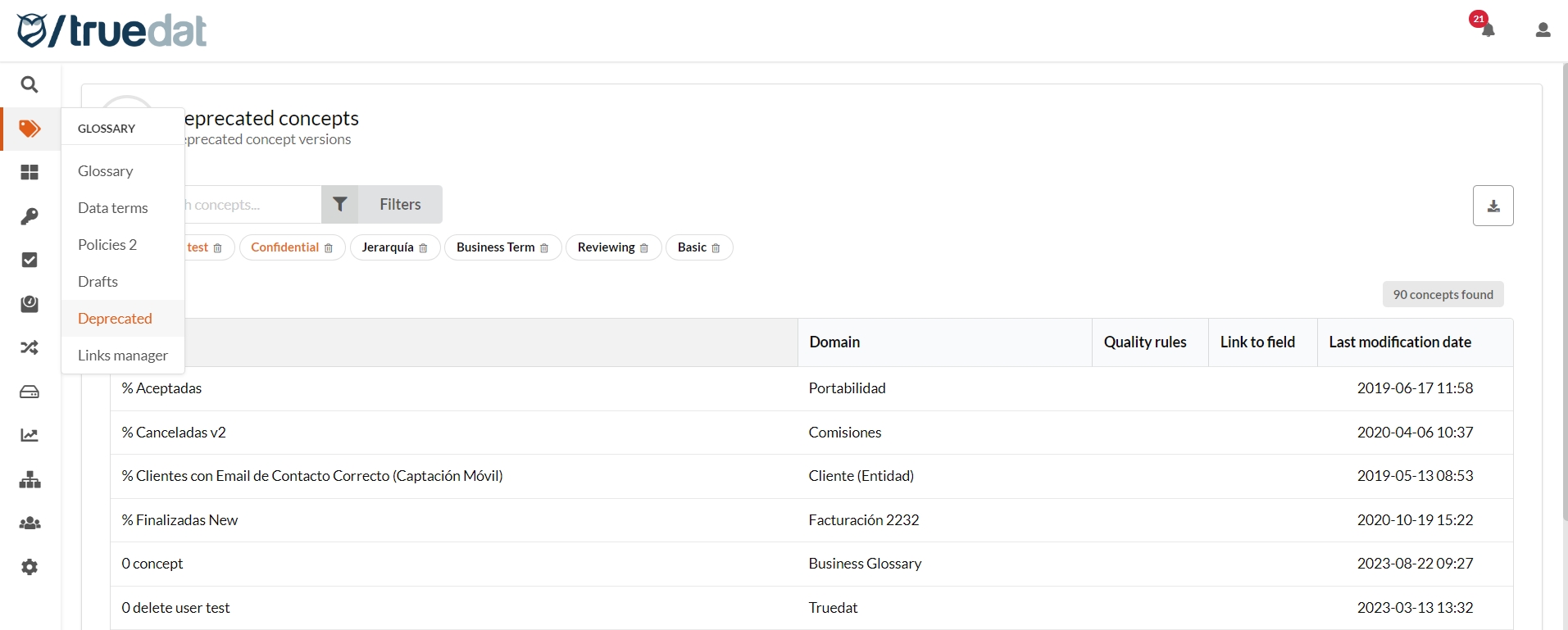 1. Business Glossary: Deprecate business concepts