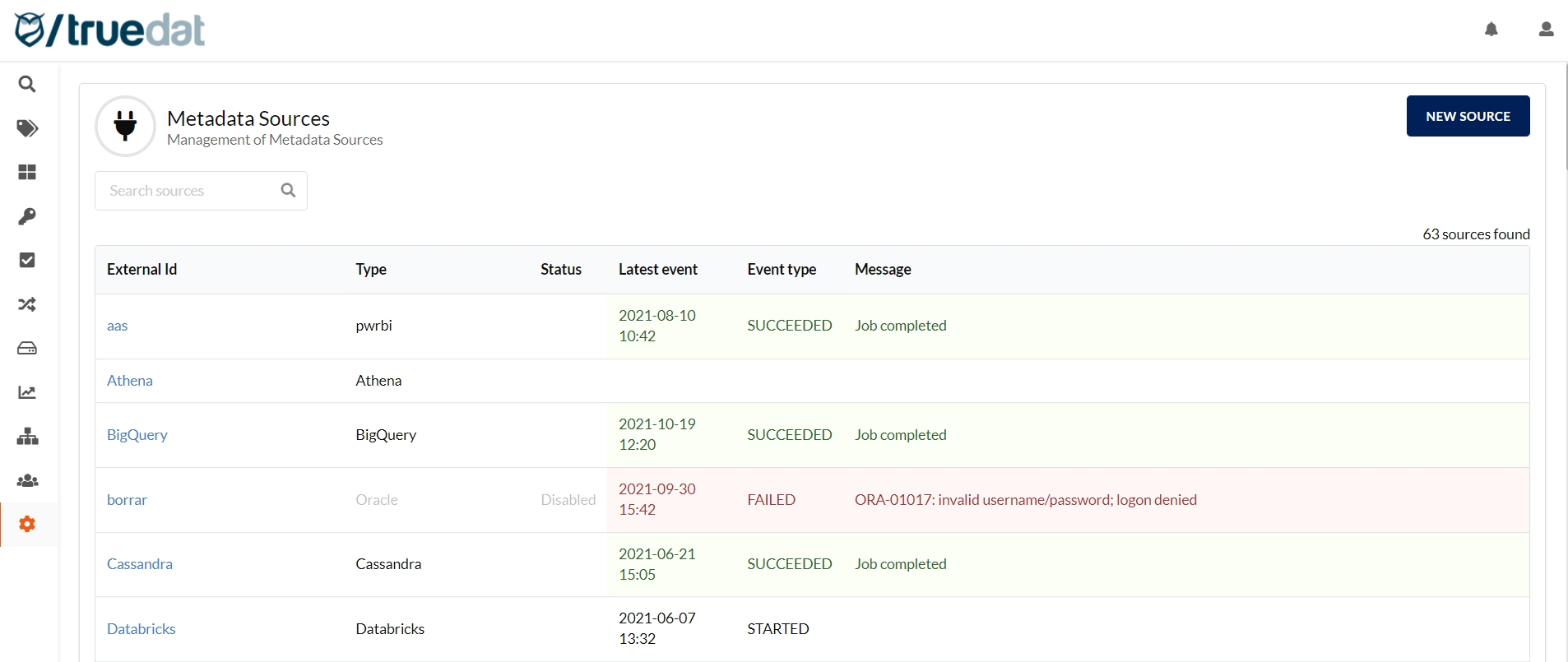 2. Data Sources - last execution date and status