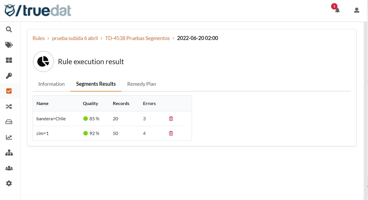 When creating a data quality implementation you will be able to define drill-down criteria, called segments in the application, so the results will be presented as a total but also by those segments.