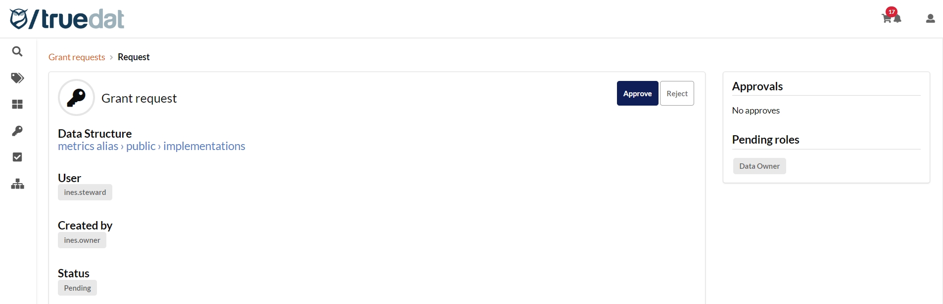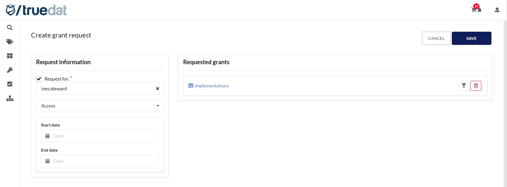TD-5133 As a data catalog user I want to request a grant on behalf of other users