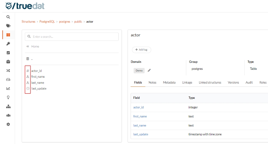 The icons displayed in the Data Catalog for structures of type field can be customised with a different icon depending on their data type, e.g. string, numeric, boolean, etc.