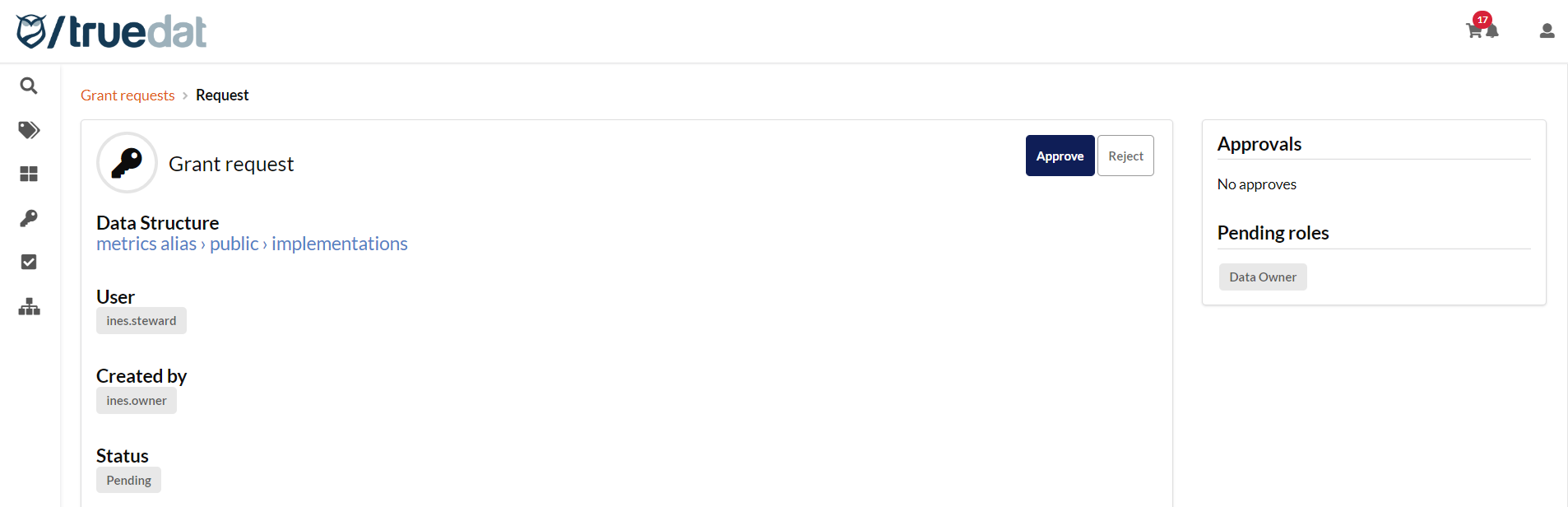 Users can request access to a data structure for themselves but now also for other users. In order to do so, the requester will need to have the permission "Create grant request for third parties" and the requestee, will need the permission "Allow grant requests from third parties".