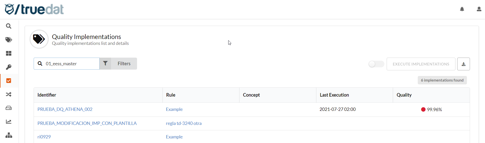 Tables and fields used in our quality implementations have been indexed in our search engine. This allows user to search implementations by field or table name, finding all quality being applied to specific data assets.