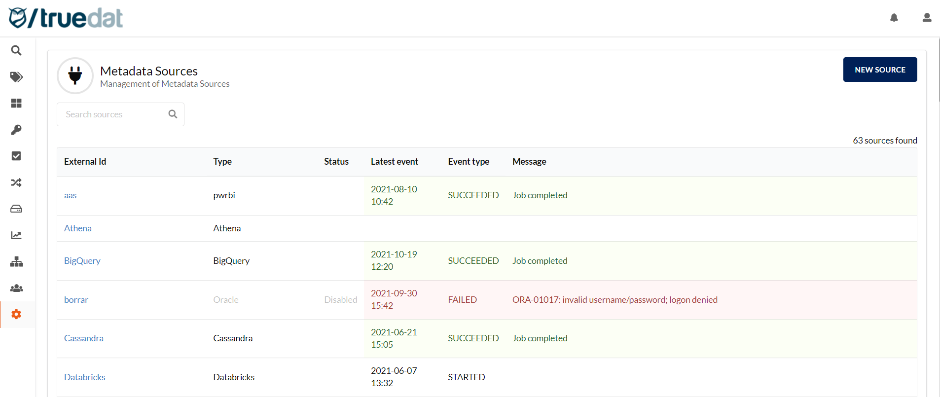 2. Data Sources - last execution date and status