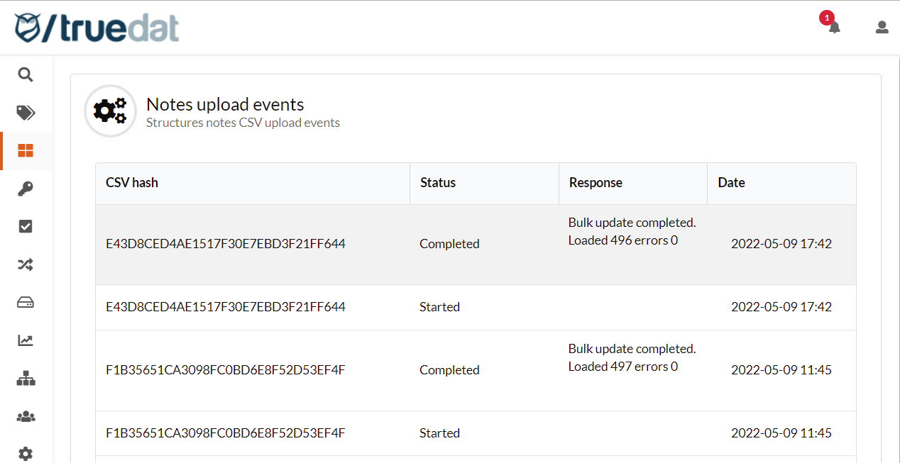 The process to load the notes remains the same but you will be able to check the progress of the load process and one it has completed in the new menu item under Data Catalog: My uploads.
