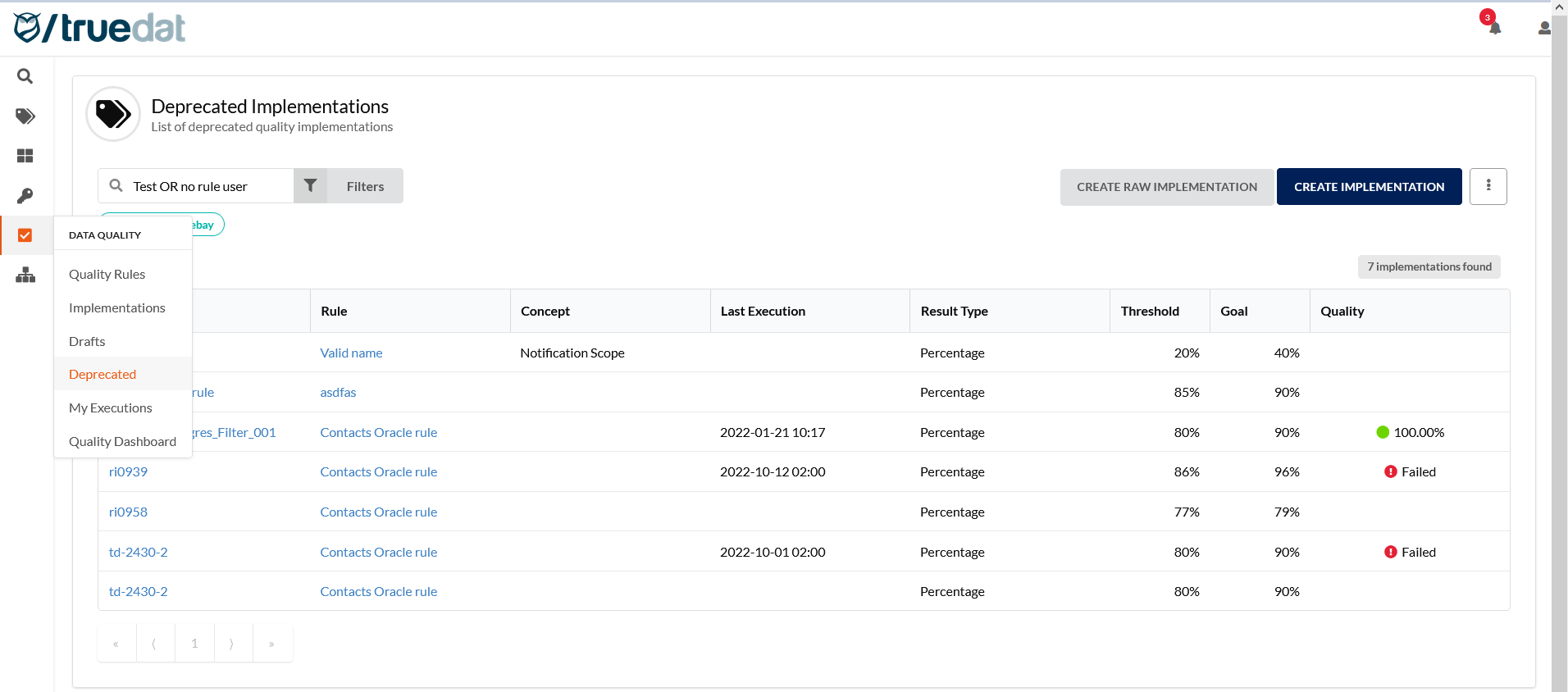 TD-5027 As a quality user I want to see deprecated implementations and recover them to published status