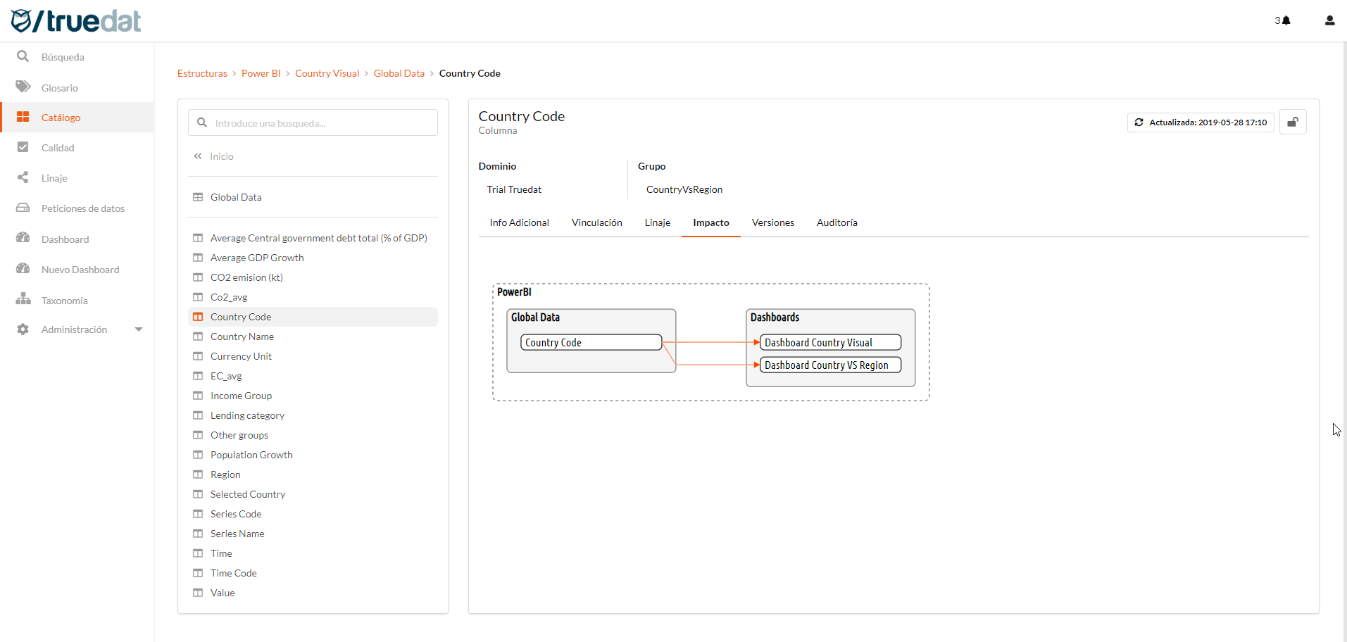 Impact: It will be shown in which other data structures the data we are consulting is being used. Where would it impact if we make a change in this data?