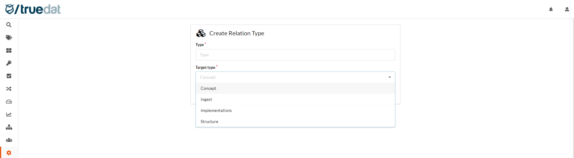 Structure: concepts can be linked to one or more data structures. You can link concepts to structures without having to set up a type of relationship, these relationships will be displayed as "Link to field" when viewing the concept's info. But if you want to mark a special type of relationship, this has to be done by defining a type of relationship in this Admin module and they will be displayed as "Master link to structure"
