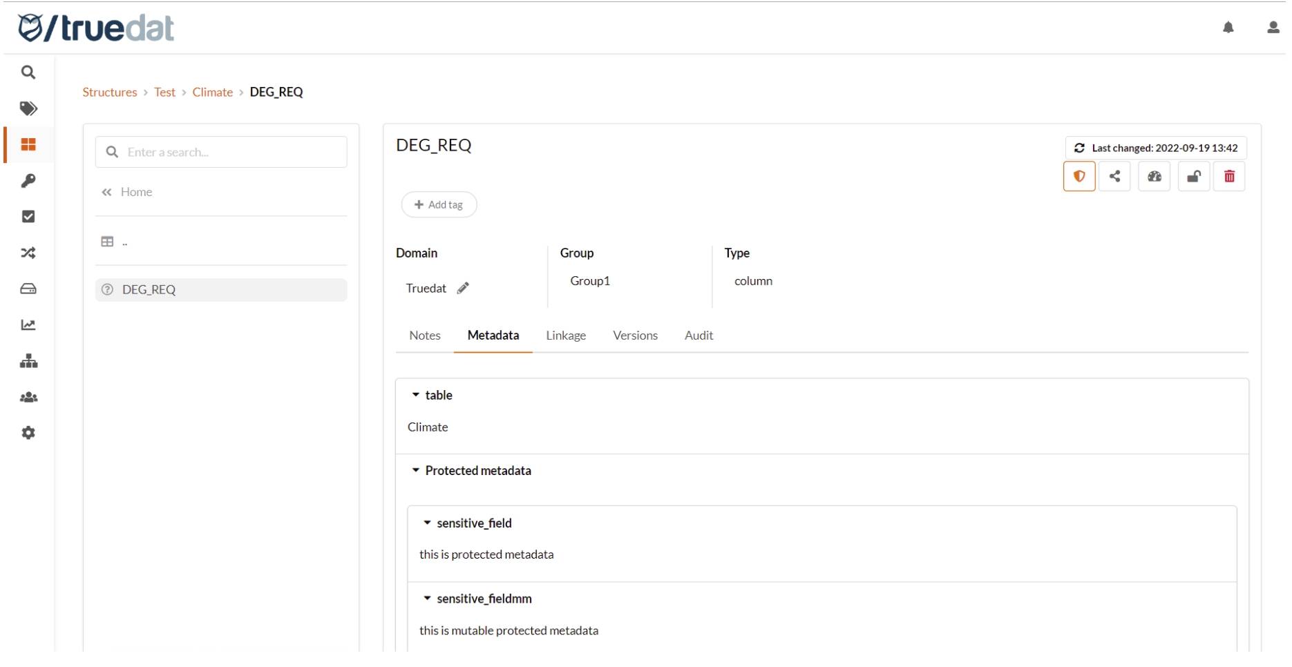 Sensitive metadata can be marked as "protected" so it will be displayed in the Data Catalog only to users with the permission to view protected metadata.