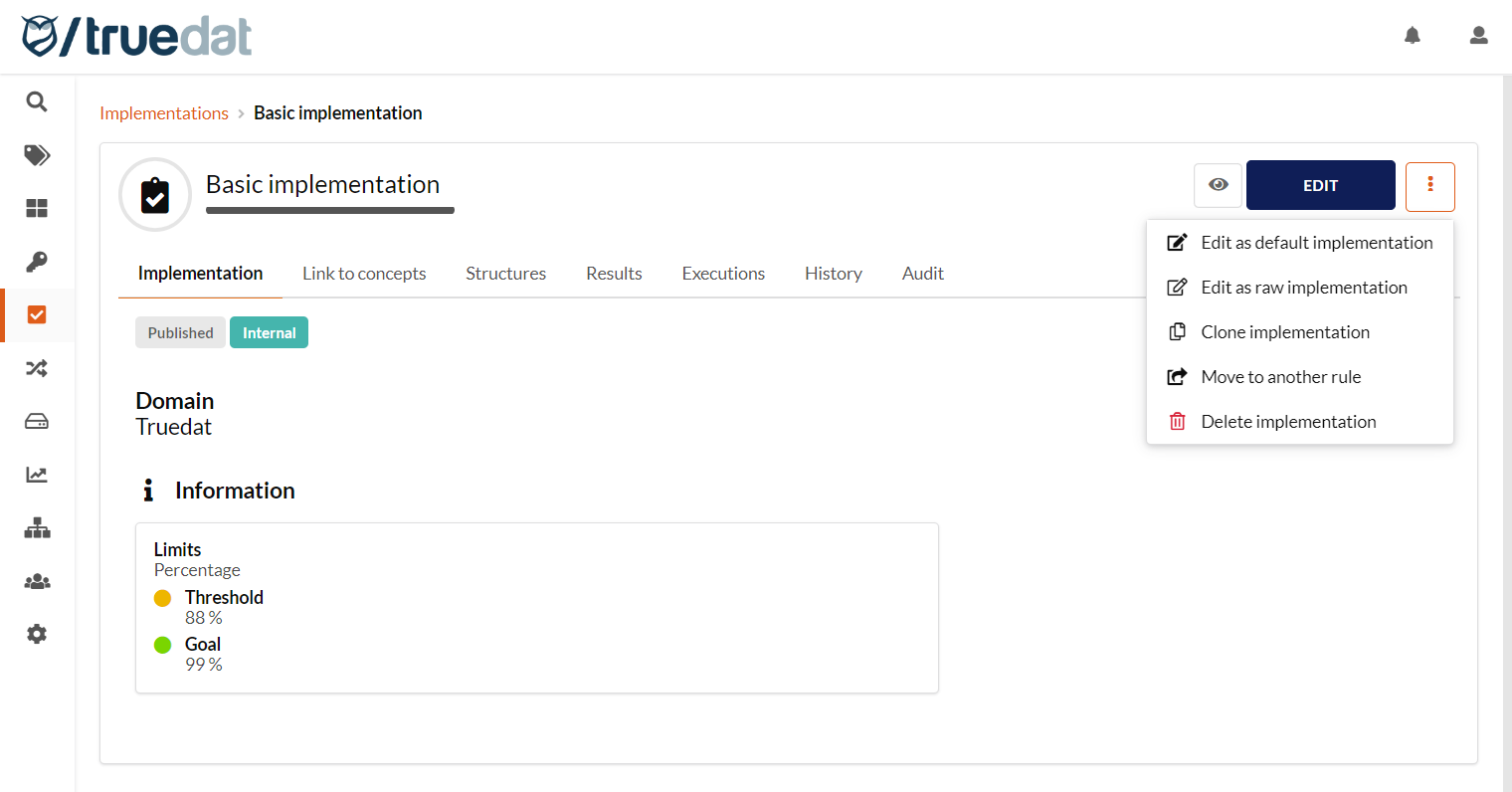 TD-5478 As a quality user I want to modify a basic implementation including dataset and validation information