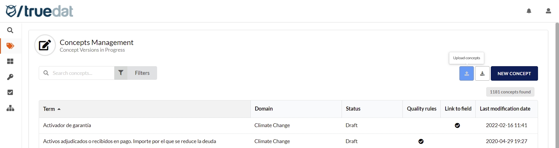 On the Business Glossary module you can view and manage business concepts. There are these submenu options in this module: