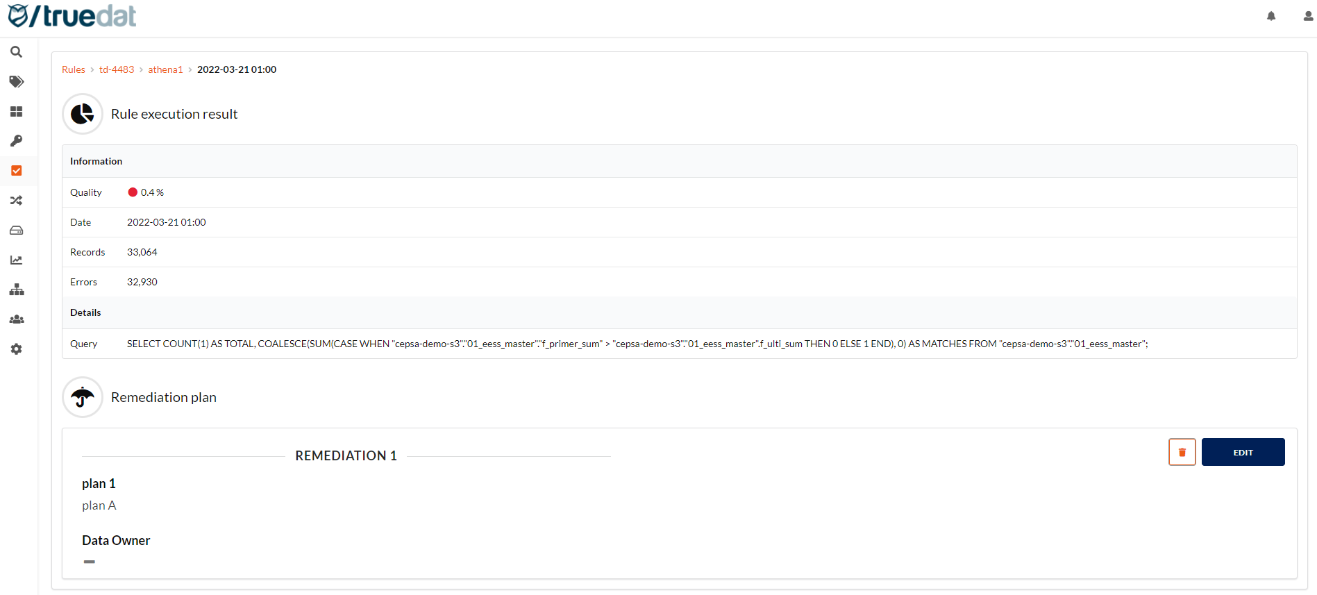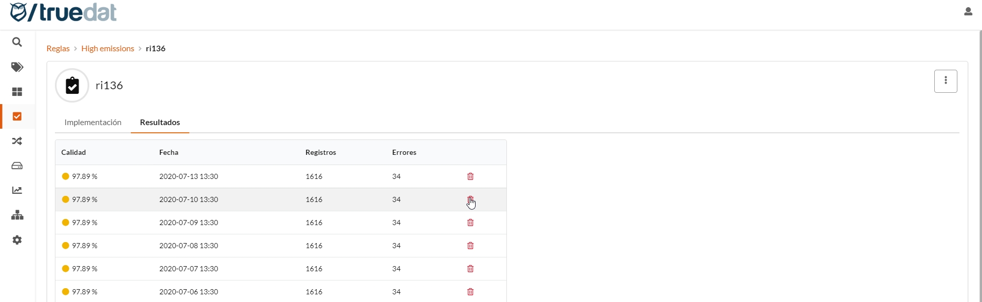 The data quality module is prepared to receive and store quality execution results, being able to display them to the user on the screen. In case of receiving results, the result of each of the implementations of the rule will be displayed.