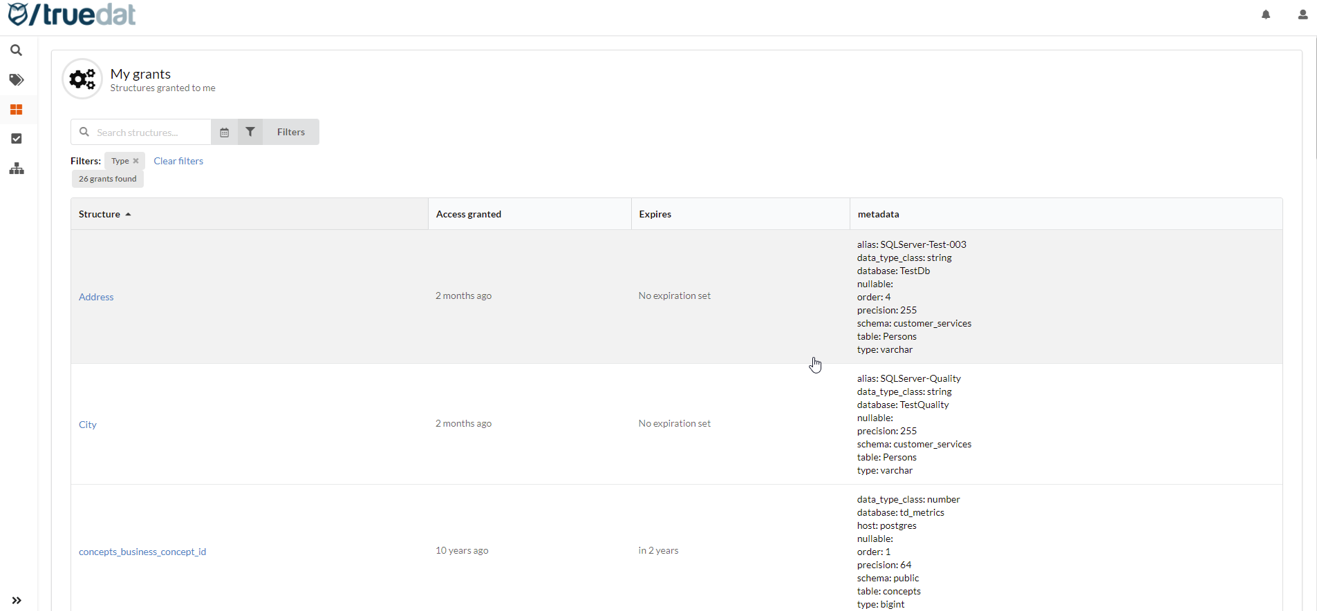 As any other view in Truedat the columns to be displayed can be customized depending on the customer requirements.