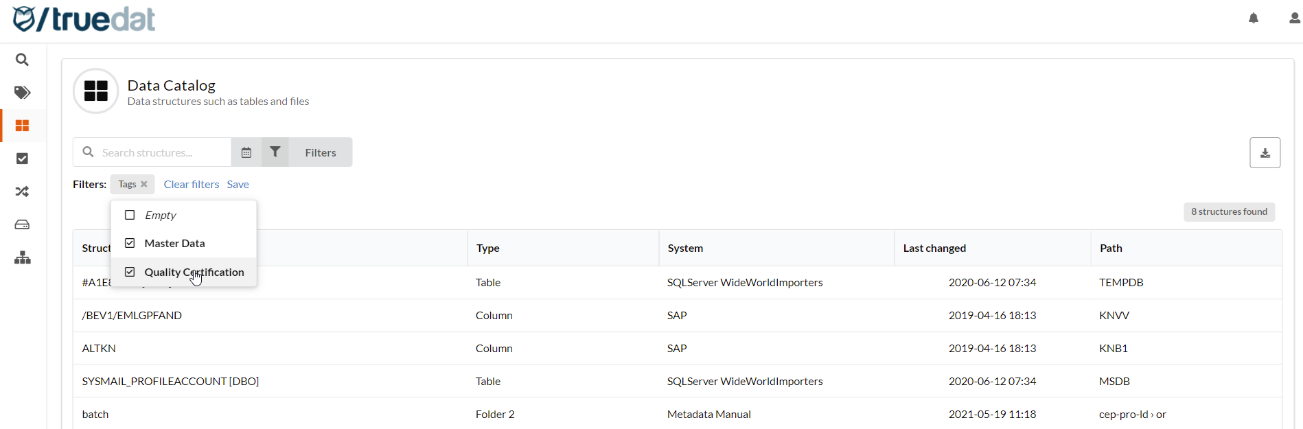 Filter data structures by tag