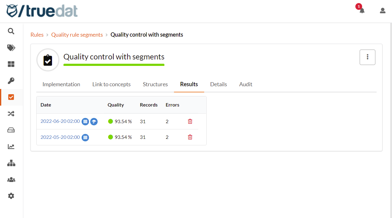 When creating a data quality implementation you will be able to define drill-down criteria, called segments in the application, so the results will be presented as a total but also by those segments.